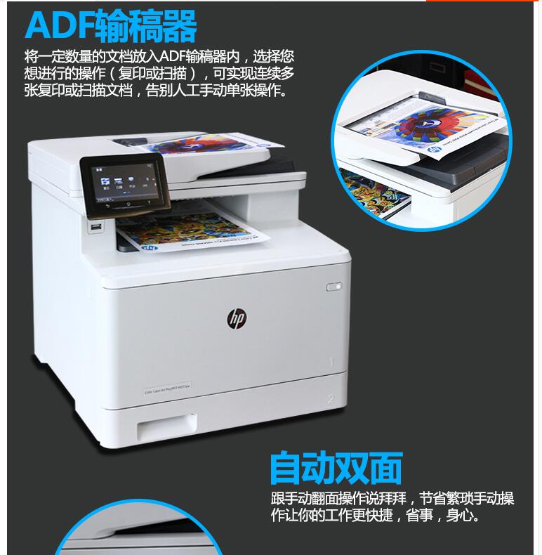 惠普M479fdw彩色激光打印機復印一體機掃描M377dw辦公
