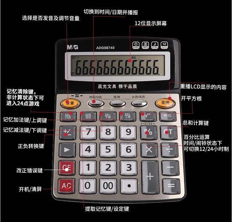 晨光計算器帶語音辦公用會計專用商務(wù)計算機辦公室大號大按鍵大屏幕女真人發(fā)音財務(wù)學(xué)生用小號便攜電子記算器